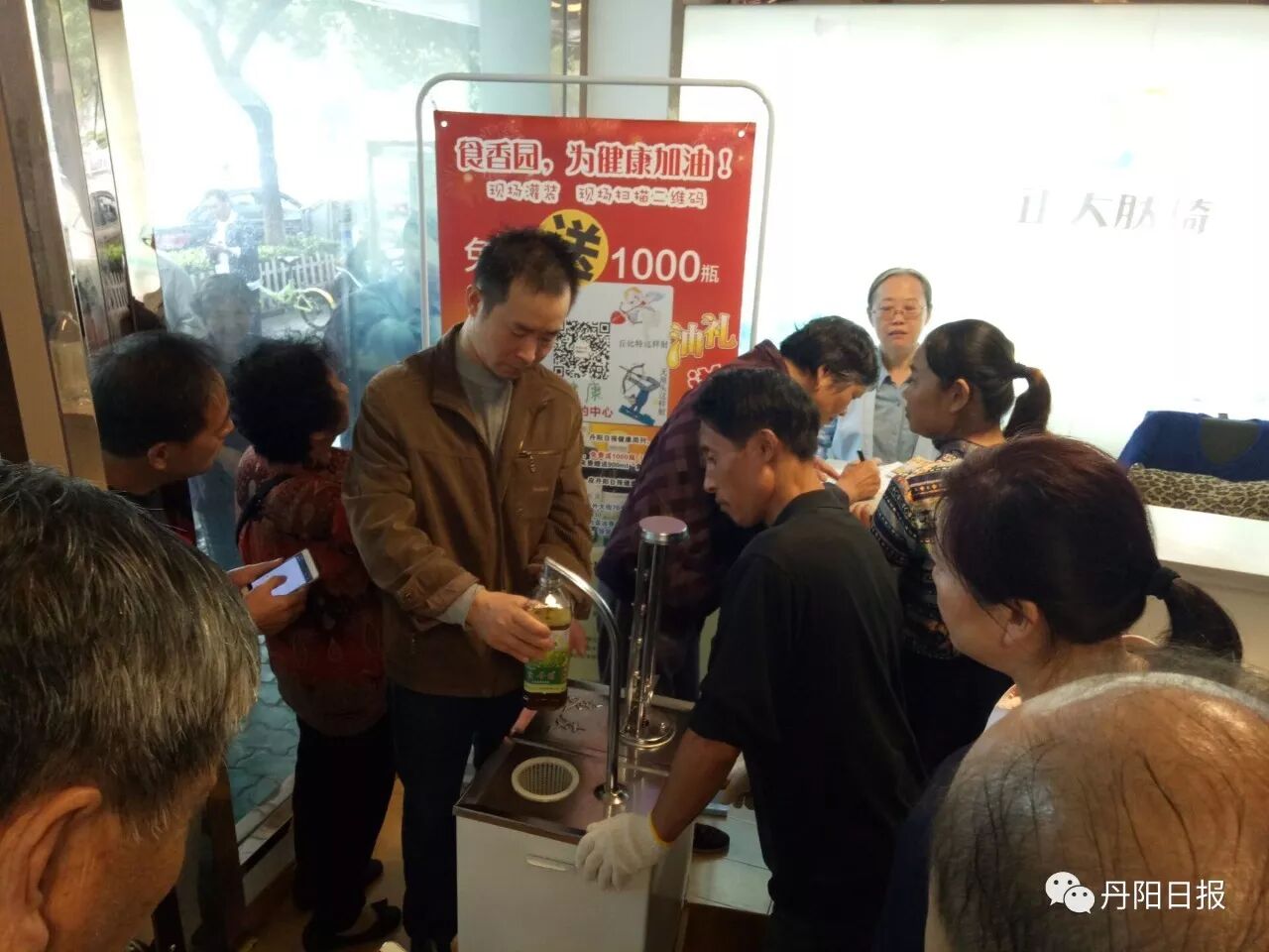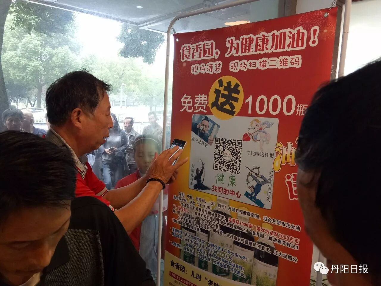 为使市民看得见、闻得到、摸得着,应丹阳日报健康周刊要求,正大油脂公司现场灌装,现灌现赠。