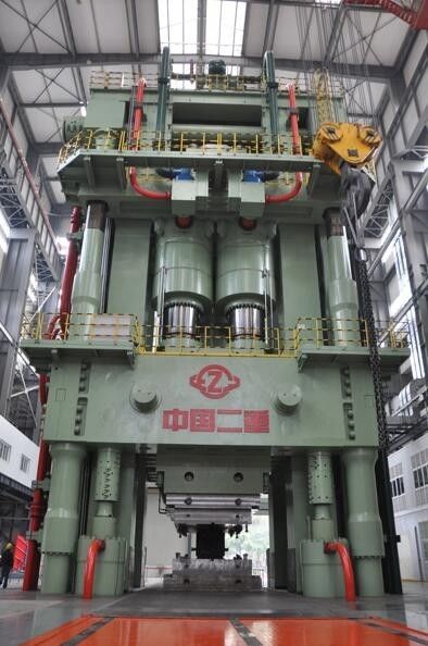 大型模锻压机主要用于航空航天、核电、石化、船舶、动力等工业用钛合金、铝合金、高温合金和高强钢等各类大型、精密模锻件的生产制造,属于基础性、战略性极限制造装备。在“高档数控机床与基础制造装备”科技重大专项的支持下,2013年4月,中国第二重型机械集团公司设计制造的8万吨大型模锻压机完成调试,打破了俄罗斯7.5万吨模锻液压机保持了51年的世界纪录。8万吨大型模锻压机最大压制力达9.5万吨,其力量可以托举起一艘满载中大型航空母舰。设备工作台面4米×8米,是目前世界最大的模锻压机,压机的同步精度、速度精度、位置精度均超过国外同量级模锻压机,处于国际领先水平。