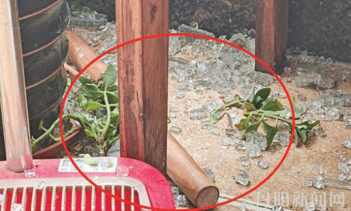 “那会儿大概是早上7点左右,只听见‘砰’的一声巨响,我跑过去一看,阳光房顶部的一块大玻璃破了个大洞,洞口周围的玻璃不断掉落。在一地的玻璃碴子中,躺着一根擀面杖。”20日上午,御河熙岸小区居民丁先生指