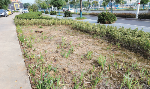 - “香草路天颐城小区南边一处绿化带内的绿植稀稀拉拉的,大部分绿植逐渐枯萎,有的地方更是土壤裸露,这与整个香草路风光带看起来十分不协调。”【详细】